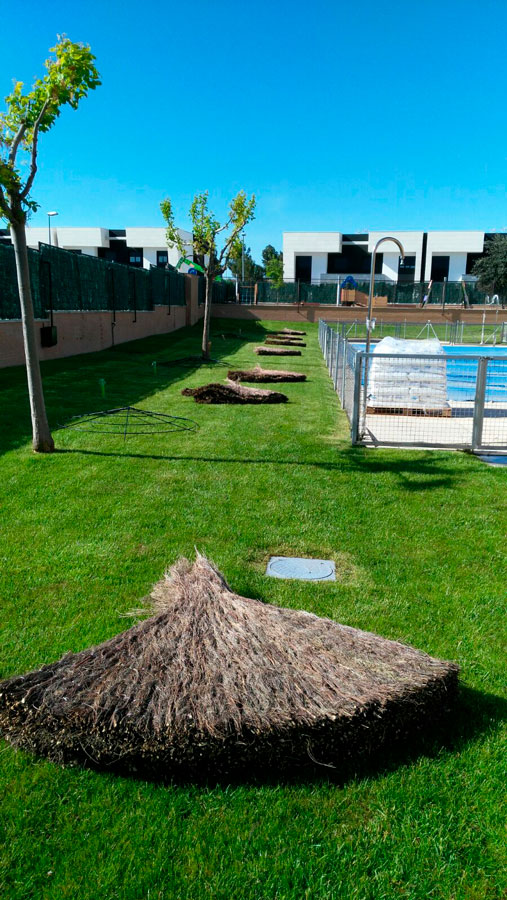 • Creación de una zona de sombra con sombrillas de brezo sobre césped natural